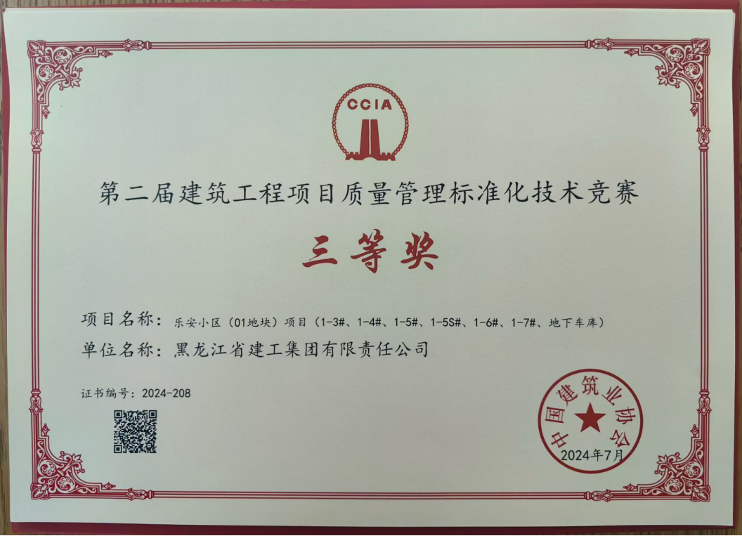 第二屆建筑工程項(xiàng)目質(zhì)量管理標(biāo)準(zhǔn)化技術(shù)競賽三等獎(jiǎng)
